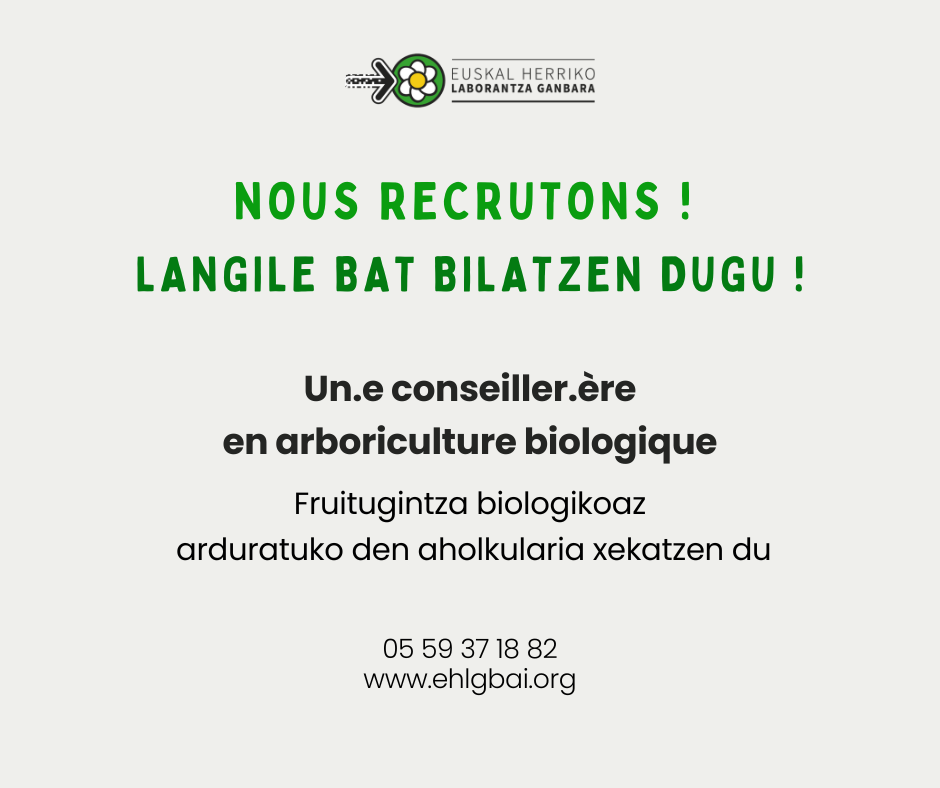 EHLGk urteko diru-biltze kanpaina abiatzen du! EHLG anemptytextlline 14 urria, 2025 LAN ESKAINTZA | Fruitugintzaz arduratuko den aholkurari teknikaria EHLG anemptytextlline 9 urria, 2025 Gaztainondo manaketa EHLG anemptytextlline 30 iraila, 2025 Les filières collectives paysannes, créatrices de valeur ajoutée sur... EHLG anemptytextlline 2 iraila, 2025 KLISKA 2025 - Argazki lehiaketa, jende guziarentzat EHLG anemptytextlline 11 uztaila, 2025 LAN ESKAINTZA | Administrazio eta finantza kudeatzailea EHLG anemptytextlline 11 ekaina, 2025 LAN ESKAINTZA | Agronomia eta landare ekoizpenetaz arduratuko den... EHLG anemptytextlline 14 apirila, 2025 LAN ESKAINTZA | Hazkuntzaz arduratuko den animatzailea EHLG anemptytextlline 14 apirila, 2025 LAN ESKAINTZA : laborantza instalazioaz arduratuko den animatzailea EHLG anemptytextlline 27 martxoa, 2025 Bere erretreta eta etxaldearen segida uztea prestatu EHLG anemptytextlline 13 martxoa, 2025 2025ko PAC primak : teledeklarazioa egin EHLG anemptytextlline 3 martxoa, 2025 Aide au maintien Petites Fermes EHLG anemptytextlline 11 otsaila, 2025 LAN ESKAINTZA EHLG anemptytextlline 4 otsaila, 2025 LAN ESKAINTZA EHLG anemptytextlline 7 urtarrila, 2025 Déclarez votre aide ovine/caprine avant le 31 janvier 2025 EHLG anemptytextlline 6 urtarrila, 2025 PCAE - PME Plan de Modernisation des Élevages 2025 EHLG anemptytextlline 12 abendua, 2024 LAN ESKAINTZA | Tokiko ekoizpen sailetaz arduratuko den animatzaile... EHLG anemptytextlline 18 urria, 2024 EHLG-ren aldeko emaitza deialdi kanpaina : orain da ! EHLG anemptytextlline 18 urria, 2024