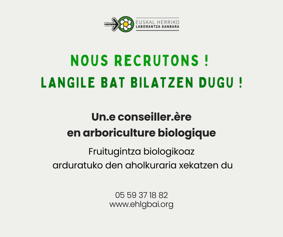 Euskal Herriko Laborantza Ganbara recherche son ou sa futur.e conseiller.ère en arboriculture biologique